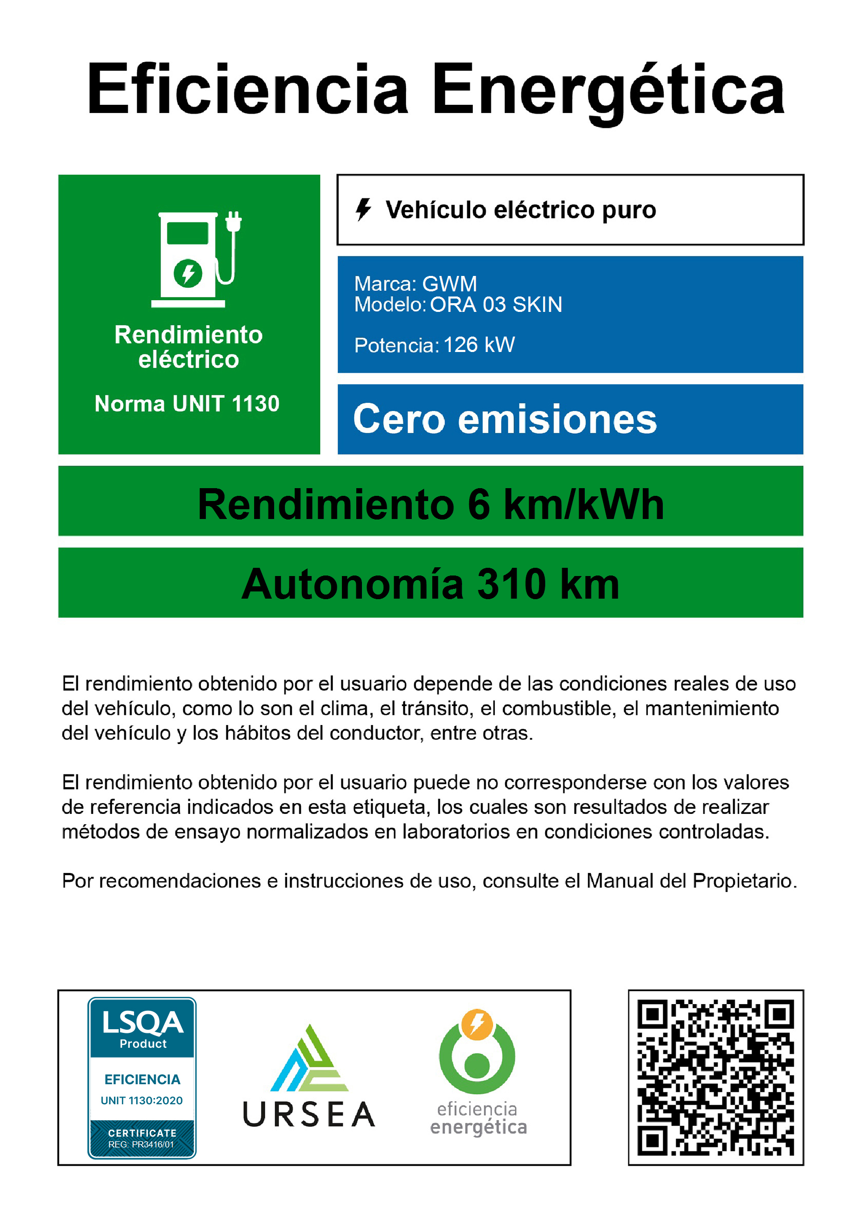 - Autonomía WLTP 310km